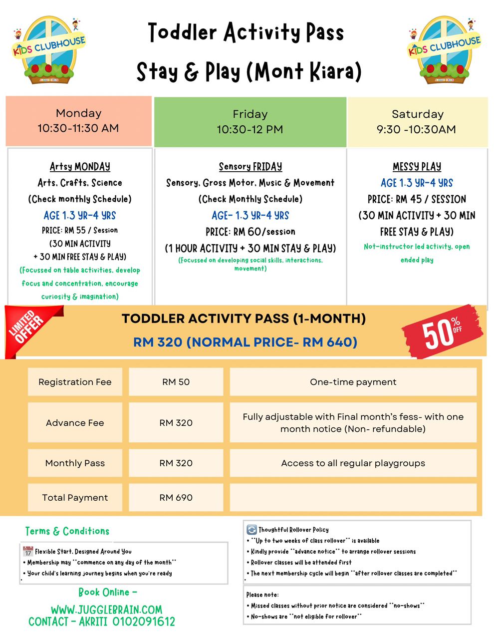 - Please refer to our Instagram (@jugglebrain) for latest weekly & monthly playgroup schedule.